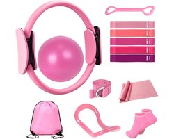 13 Stuks Pilates uitrustingset voor dames - Yoga & Fitness Set - Pilates-trainingsset voor thuis - thuisgymset - Oefenbanden - Weerstand Band - oefenbal - yogaset voor beginners met pilatesring, 24 cm yogabal, 5 weerstandsbanden, magische cirkel