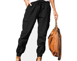 Cargo Broek Multi Zakken - Elegante Loose Fit Dames Broek - Effen Casual Jogging Broek - Sport Werkkleding Wandelbroek - Outdoor Trekking Yoga Broek (L-zwart)