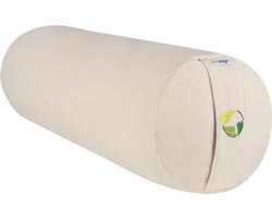 In de praktijk is de boekweitvulling aanvoelend steviger dan een kapokbolster — vergelijkbaar met een strak gevulde boekweit meditatiekussen. Bij langdurig liggen op de bolster, zoals in Supta Baddha Konasana, geeft hij uitstekende ondersteuning zonder in te zakken. Let op: boekweit kan in de loop van de tijd samenklonteren; regelmatig schudden helpt. Qua materiaalgevoel is het beige katoen aangenaam, al is het niet zo pluizig zacht als velours-bolsters van andere merken.