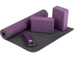 Goodivery ® Yoga Starter Set compleet | Set bestaande uit: 1 yogamat van TPE, 2 yoga-blokken van EVA (schuimrubber) en 1 yogariem van katoen | beginnersset voor yoga-beginners