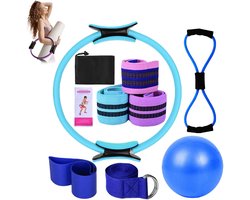 Kraftverdia® - Pilates Ring - Weerstandsbanden - Pilates bal - Yoga ring - Ideaal voor fitness en flexibiliteitsoefeningen - Complete Lichaamsverstevigingsset - Yogabanden voor stretching - Resistance band - Blauw - Accessoires voor Thuisgymnastiek
