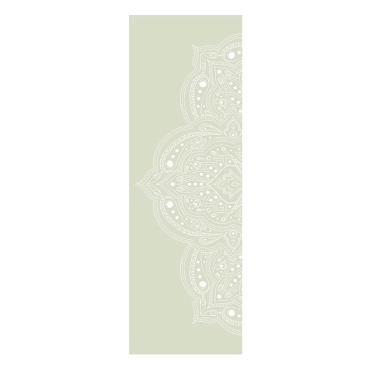 Extra dikke zachtgroene yogamat met witte mandala print. Voor ultiem comfort, grip en stijl tijdens elke yoga practice. Ook geschikt voor Pilates en Fitness.