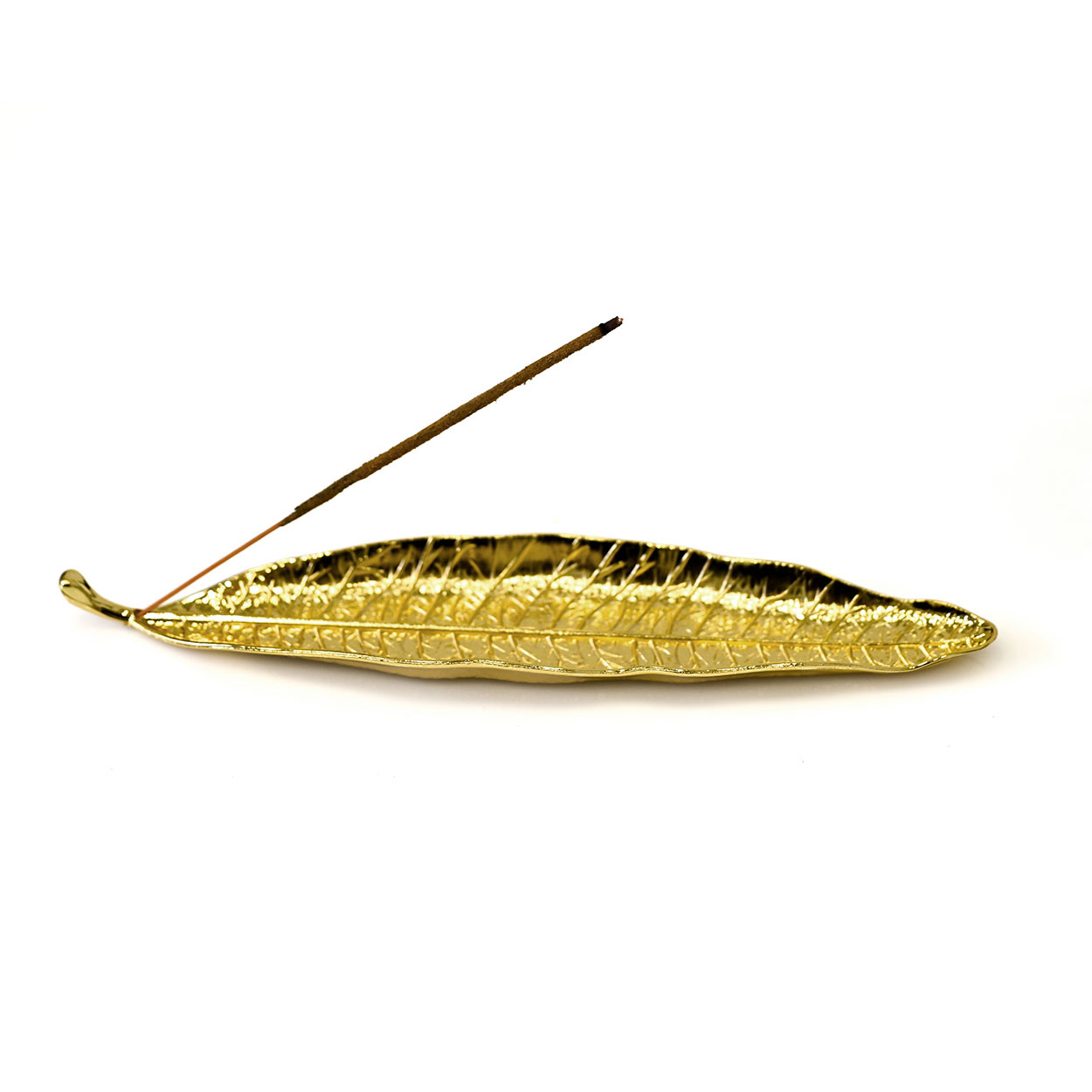 Elegante wierookhouder in de vorm van een blad. Gemaakt van metaal. Speciaal om wierook stokjes op te branden.