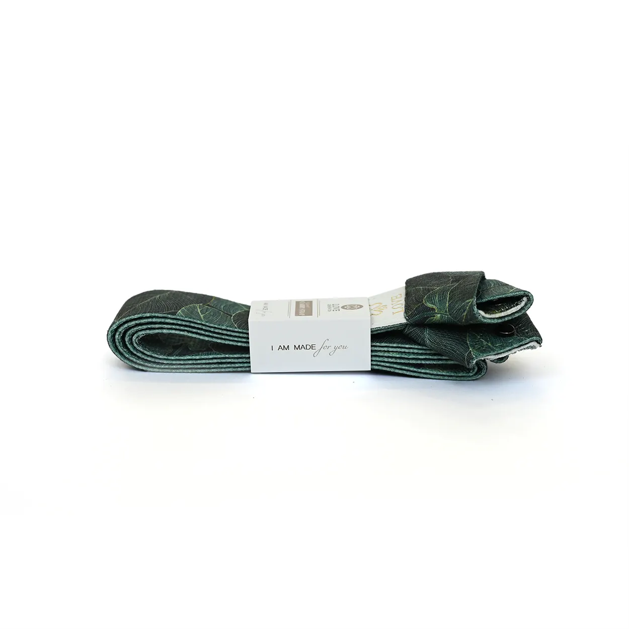 Draagriem voor yogamat met diepgroene bladerprint - stijlvol, stevig en geschikt voor alle yogamatten. Ook te gebruiken als yogariem. Licht en praktisch.