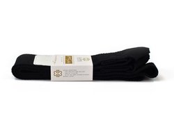 Deze riem is gemaakt van 100% katoen, wat hem aangenaam zacht aanvoelt op de schouder in vergelijking met synthetische alternatieven. De verstelbare sluiting past op de meeste matdiameters, van dunne reismatten tot dikkere 6mm opties. De zwarte kleur ("Beautiful Black") is tijdloos en vlekken vallen er minder snel op — handig na een intensieve les.