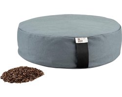 De ronde vorm is bewust gekozen: anders dan rechthoekige zabutons past het kussen zich beter aan je zithouding aan, of je nu in kleermakerszit, lotus of seiza zit. Het ECO-label betekent dat de vulling en buitenstof duurzaam geproduceerd zijn — een pluspunt als je yogawaarden ook buiten de mat wilt doortrekken. De Stone Grey kleur is neutraal genoeg om in elke meditatieplek te passen zonder afleidend te zijn.