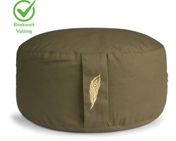 Het kussen is gemaakt van eco-vriendelijke materialen en valt op door zijn dubbele stiknaad, die zorgt voor extra duurzaamheid en langere levensduur. De groene kleur geeft een rustgevende uitstraling die goed past bij een meditatieomgeving. De hoogte van 15 cm is ideaal voor mensen met gemiddelde of beperkte heupflexibiliteit, terwijl de diameter van 33 cm voldoende zitoppervlak biedt voor een stabiele houding.