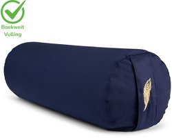 De bolster valt op door zijn dubbel gestikt buitenmateriaal, wat de duurzaamheid flink ten goede komt — naden zijn vaak het eerste wat bezwijkt bij goedkopere bolsters. De afmetingen van 60 x 20 cm zijn klassiek cilindrisch: compact genoeg voor thuisgebruik, maar groot genoeg voor een stevige ondersteuning bij hart-openers en heupstretches. De donkerblauwe kleur is rustig en tijdloos, passend bij een meditatieve sfeer.