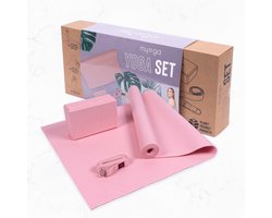 Home/Yogasets/Myga - Yoga set - Yoga starter kits - Pink - 1 yogamat ( 173 cm x 61 cm ) - 1 yogablok (14,5 x 7,7 x 23 cm ) - 1 yoga strap/riem