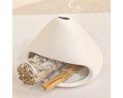 Home/Meditatie Accessoires/Palo Santo Houder voor Wierook en Meditatie - Houtskool Bakhoor Brander en Ash Catcher - Smudge Bowl en Salie Houder in Wit