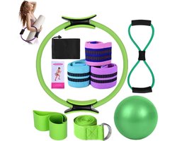 Pilates Ring - Weerstandsbanden - Pilates bal - Yoga ring - Ideaal voor fitness en flexibiliteitsoefeningen - Complete Lichaamsverstevigingsset - Yogabanden voor stretching - Resistance band - Groen - Accessoires voor Thuisgymnastiek